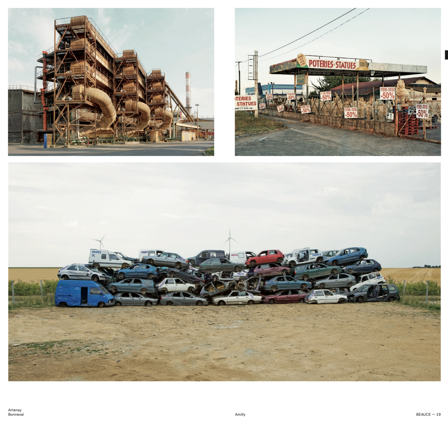 Voilà près de 5 ans qu’ Eric Tabuchi et Nelly Monnier se sont donné la mission folle de photographier les 450 régions naturelles de l’hexagone. Grandes de quelques dizaines de kilomètres, ces entités géographiques et culturelles ont des dimensions et une granularité appréhendables par l’homme. Le cœur de leur exploration s’attache à nos manières d’investir le paysage, de l’habiter, de le façonner. Les routes, les habitations, les commerces, les initiatives individuelles de construction, la typographie des enseignes, les noms des villages, ils traquent à la fois les invariants et les écarts à la norme qui croisés, définissent nos identités. Cet inventaire n’est pas scientifique, il est comme un animal qui se nourrit et évolue de ses découvertes, et s’il paraît parfois moqueur, c’est pourtant avec une certaine tendresse qu’il nous engage à regarder enfin ces paysages que nous avons tellement vu, mais si peu regardé.