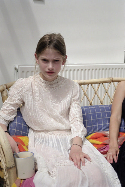 You will see how delicately Angela Hill moves between fashion and documentary photography. These three images were shot at Sylvia's childhood home. The still life is of her bedroom. The light and the colour palette are Sylvia's own. This is how and where she grew up.