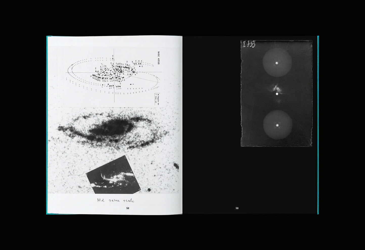 “With or without legends, these images of stellar fields torn from their context of production and use resemble as much a photogram of dust clusters as a magnification of the photolytic structure of the silver grains constituting the image. The fascinating beauty of these photographs oscillates in vertigo between the immensely large and the immensely small, between the star and the task, between the dust and the star. And the boundaries are porous between a scientific image and an abstract image offered to aesthetic delight. These osmosis between scientific and artistic images recall the malleability of photographs. They have this immense facility to one day be in the field of science, another in the field of archive and then art to be considered again as documents and finally all at once.”