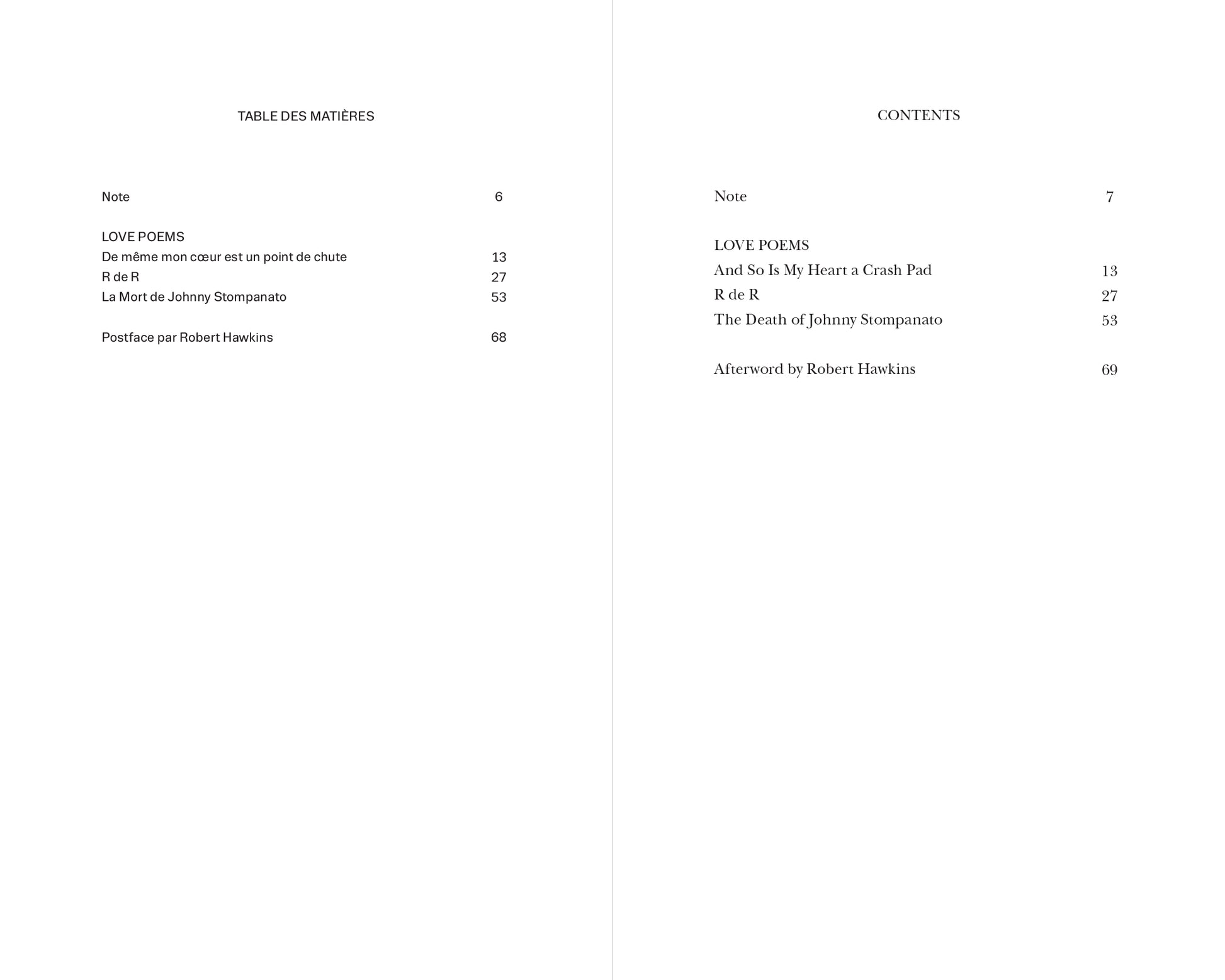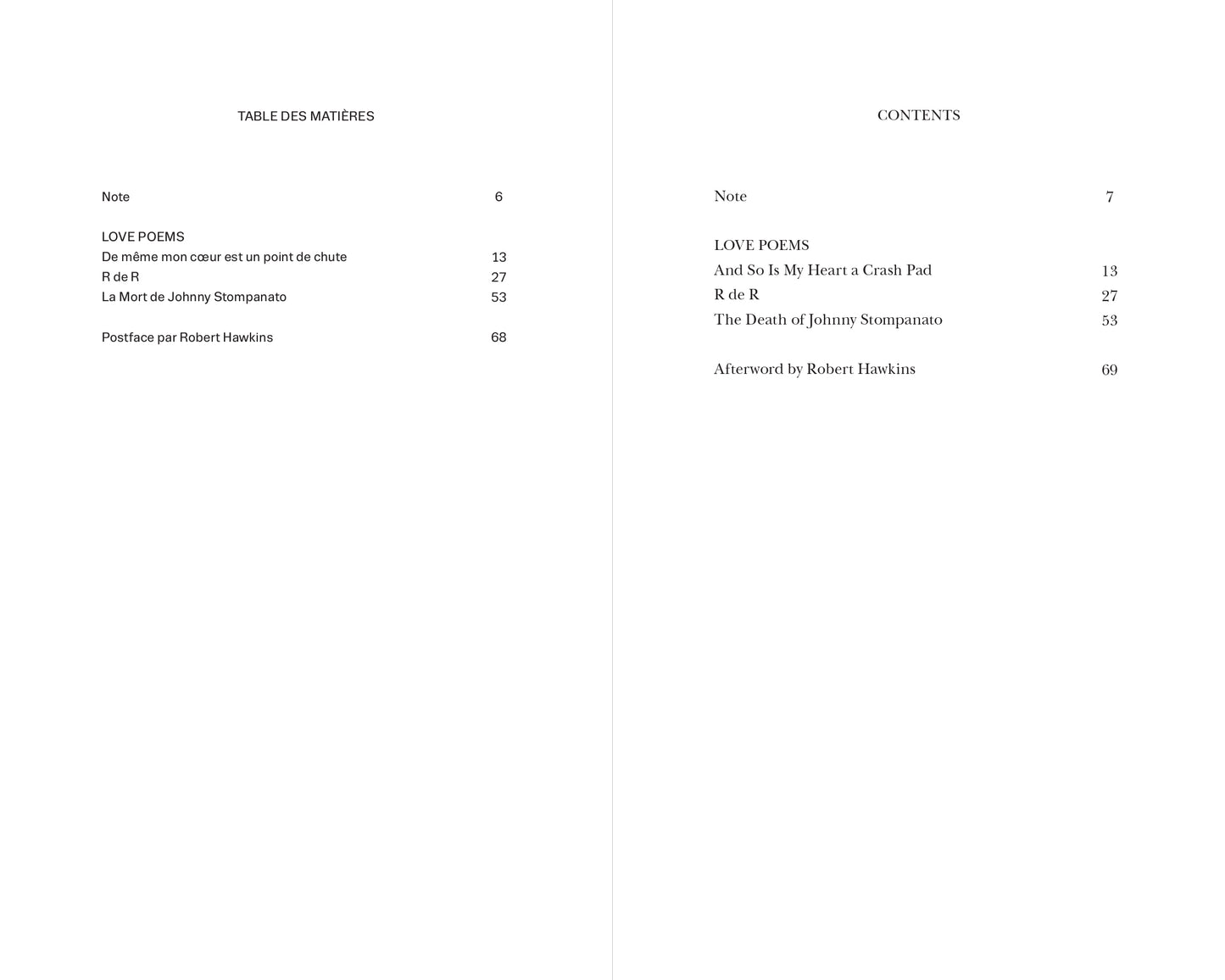 Translated into French by Rachel Valinsky and Manon Lutanie, and presented in a bilingual edition, the poems are followed by a newly commissioned afterword by Hawkins retracing his encounter, friendship, and collaboration with Ricard.